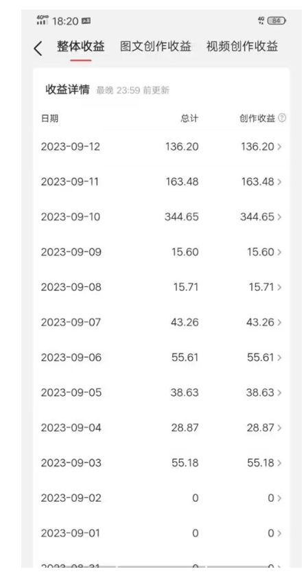 7、收益快,今天的收益,明天就到账,我们目前的方法:从新号开始发文,第二天就有收益